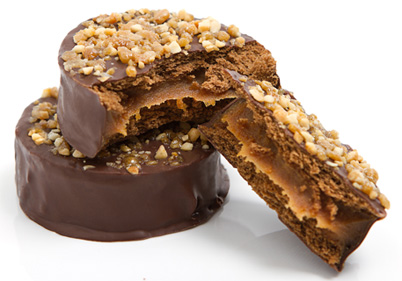 bañados con chocolate y crocante de maní.