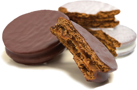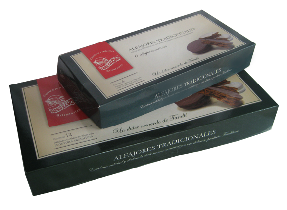Típicos alfajores de 40gr rellenos con dulce de leche.